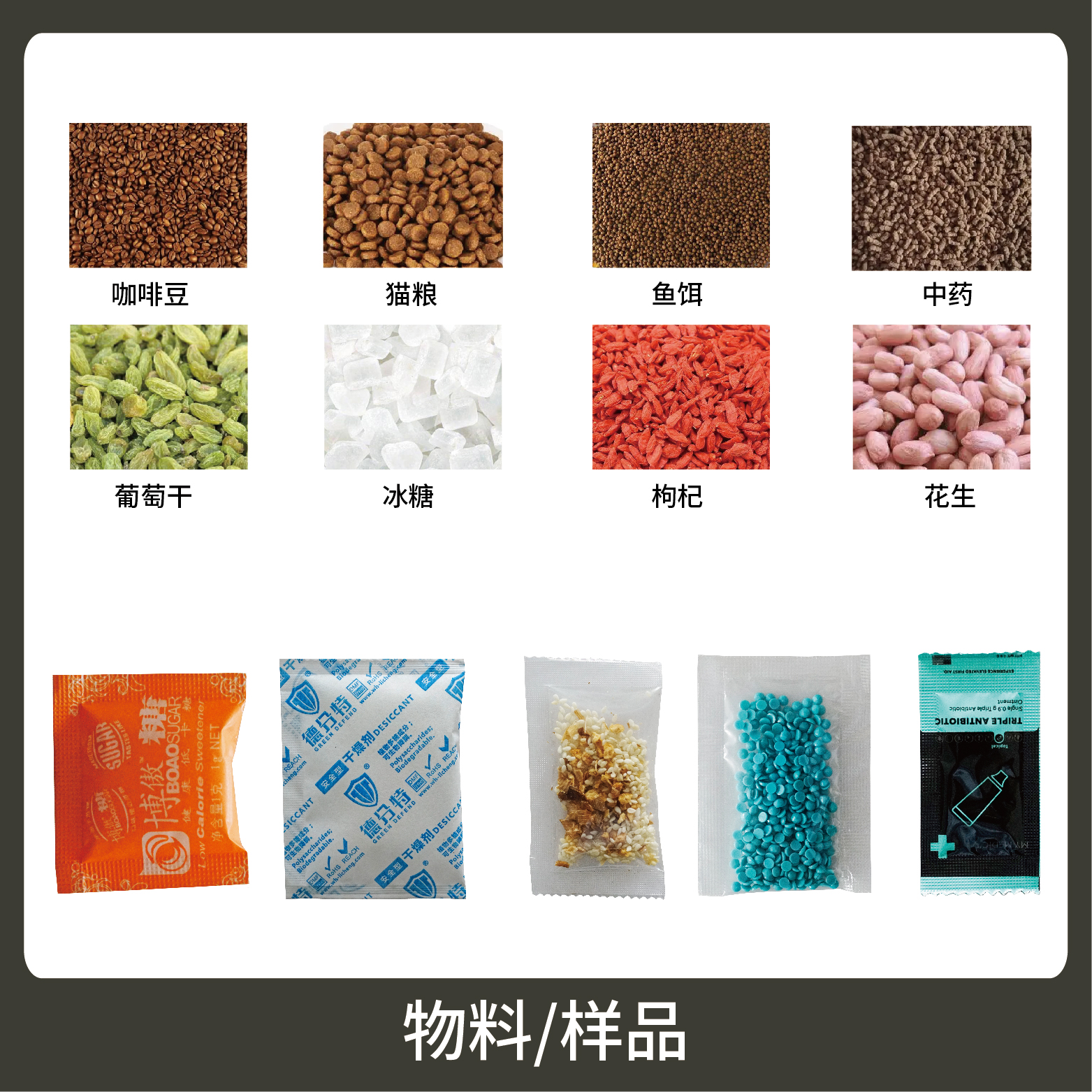 1、適用于各種調(diào)味料,中藥顆粒、干燥劑,沖劑等小顆粒狀物品的計量包裝。